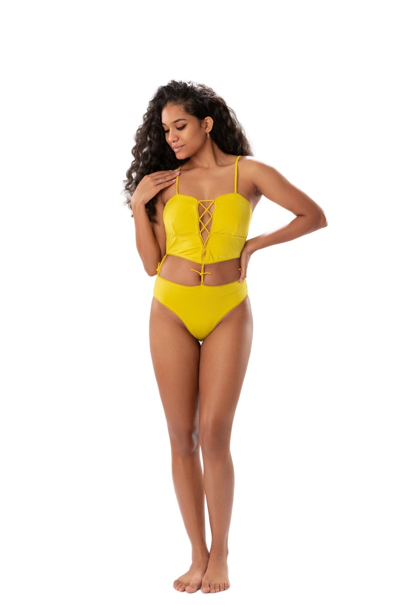 Recycled Fabric Mustard Tankini Bikini Top