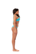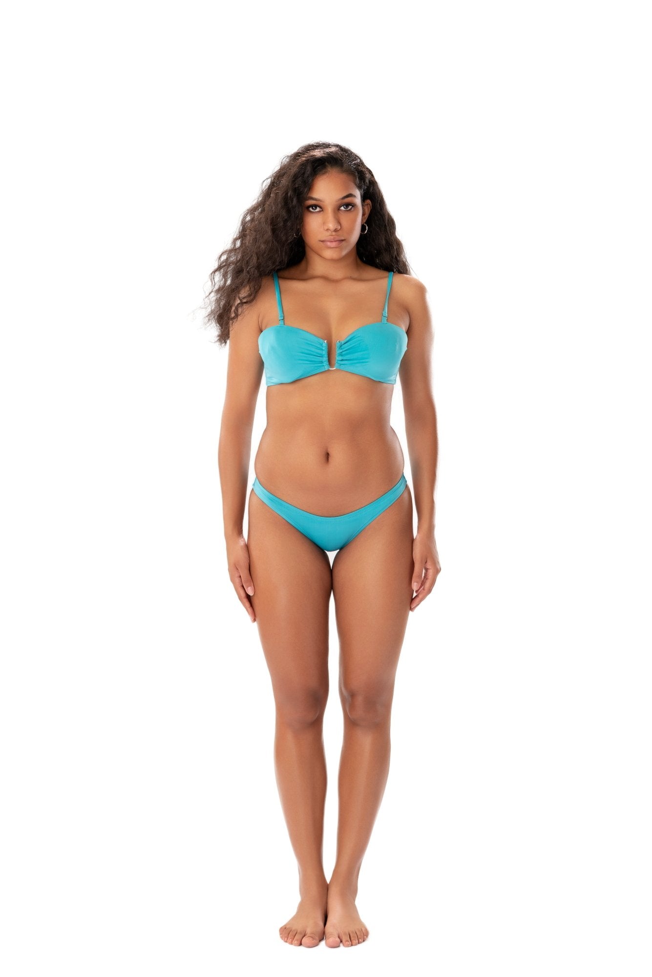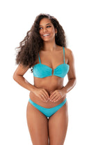 Can't go wrong with basics. Turquoise recycled fabric bikini top with cute harware details perfect for the effortless days.