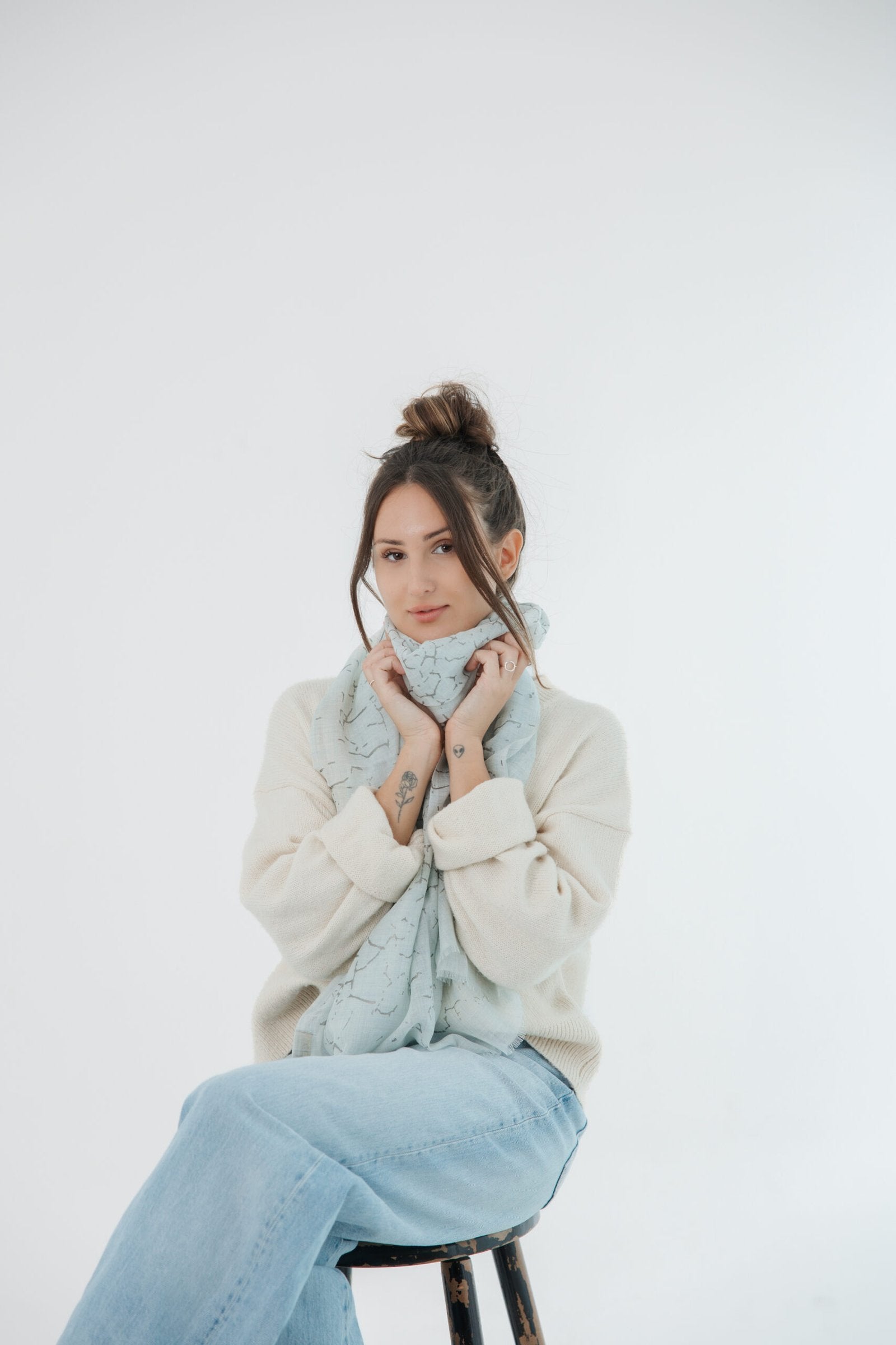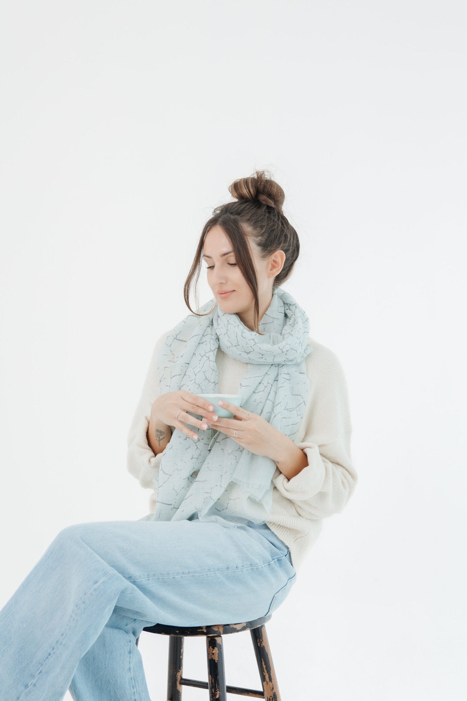 Designed for those who appreciate artistry in simplicity, these scarves pair timeless neutrals with quiet shimmer — perfect for elevating everyday elegance.