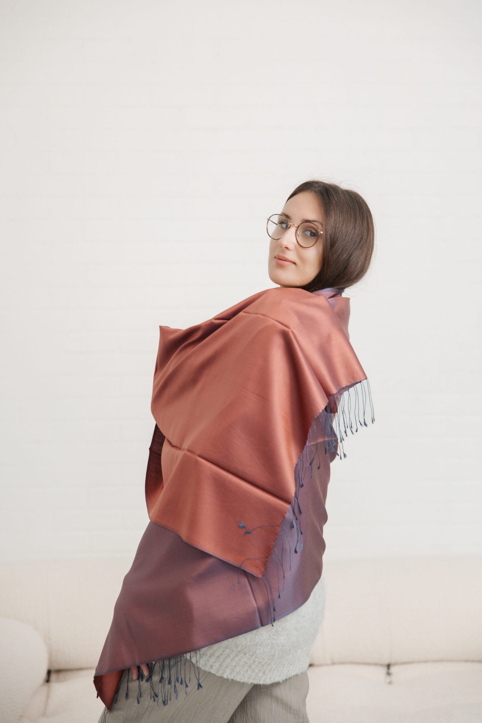 These scarves drape effortlessly, reflecting understated glamour and sophistication — perfect for elevating both casual and evening ensembles. Whether wrapped, draped, or tied, they bring a radiant touch of refinement to any look.