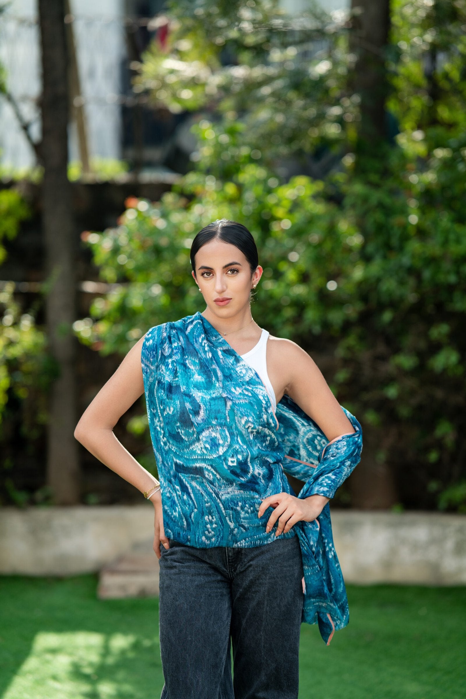 Modal Cotton Blended Woven Scarf - Blue & White