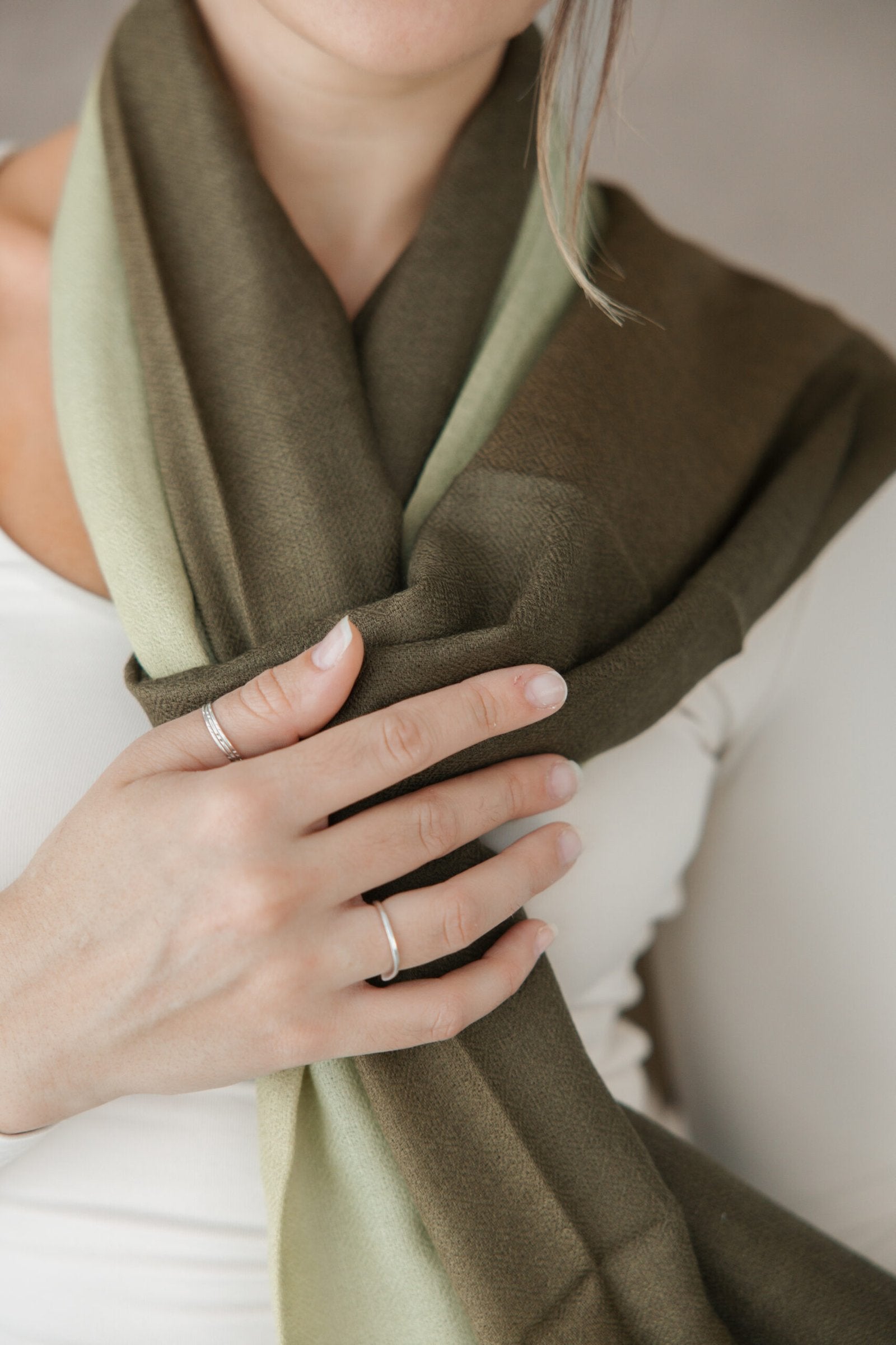Calm, elegant, and endlessly versatile — the Serene Gradient Collection celebrates the beauty of color transitions and tactile softness. Made from a luxurious 85% Wool and 15% Silk blend, each scarf drapes fluidly, offering warmth without weight. The delicate ombré gradients evoke nature’s gentle shifts — from misty mornings to tranquil evenings.