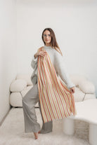 The Sunset Stripes Collection brings a cheerful touch of color to every look. Crafted from a breezy 70% Cotton and 30% Silk blend, these scarves combine everyday comfort with a hint of luxurious sheen.